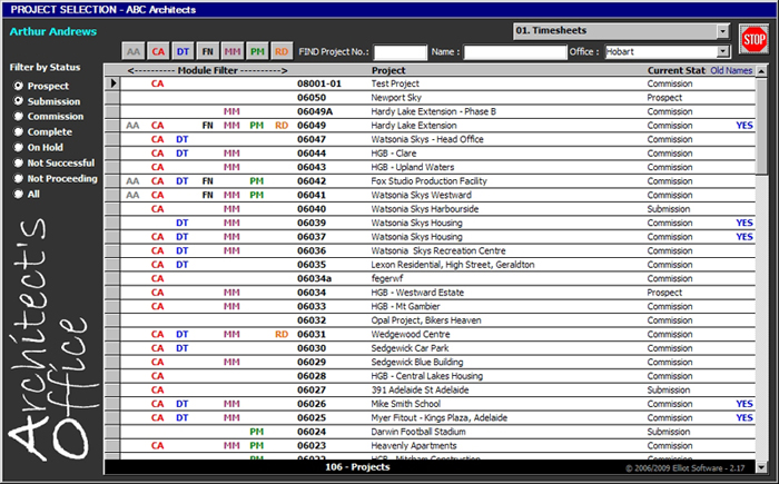 Architect's Office is an integrated and centrally controlled relational database system dealing with the Project Administration functions of a typically busy Architectural Practice, and capable of responding to changing requirements. The system was developed in Australia, by Architects for Architects, over the last 25 years, and is constantly being refined, improved and modified to meet the ever changing needs of today's electronic office environment. Architect's Office consists of a complete set of Office Administration tools that applies a layer of control over internal and external Project Management tasks. Standardised procedures prevent misunderstanding and duplication. Currently installed in over 100 practices, with over 2000 users, spread across Australia.